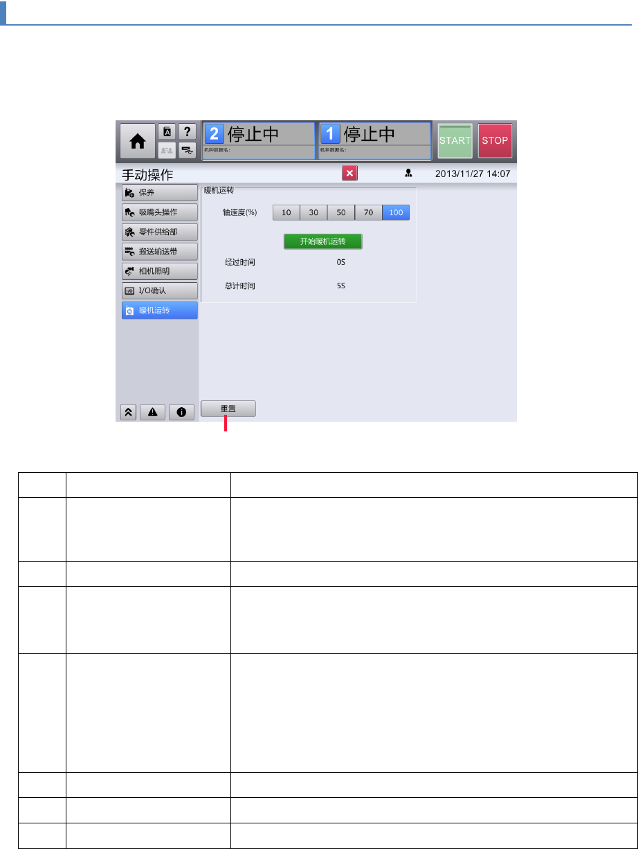 [暖机运转]画面仅在用户级别为[维护]时显示。