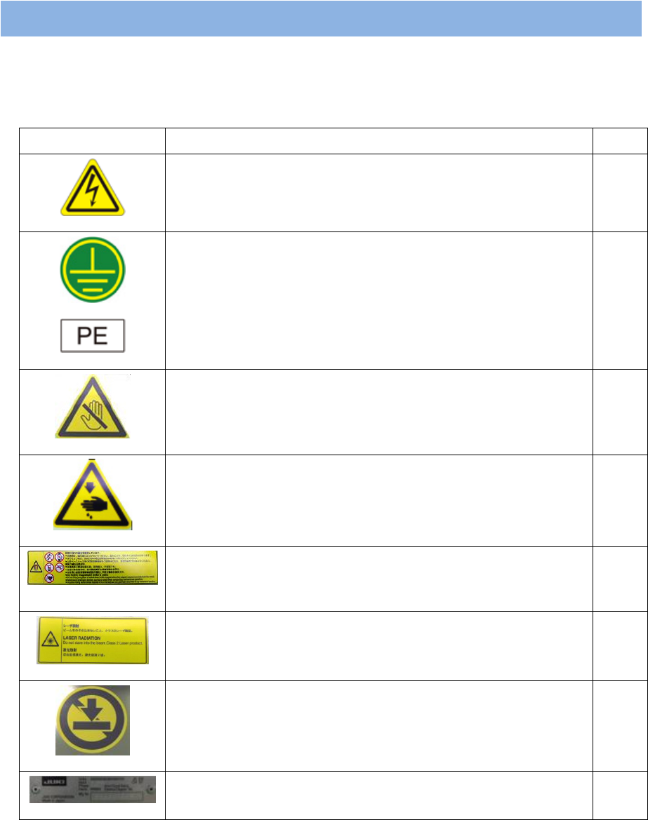 本机所贴显示警告标签的种类和意思如下。请在理解了各种记号意思的基础上,给予充分注意,进行作