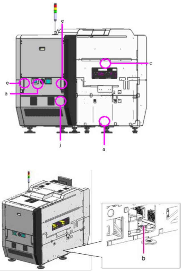 警告标签位于本机的如下位置。标签的详细说明请参见上表的相应项目。另外,请确认紧急停止开关的