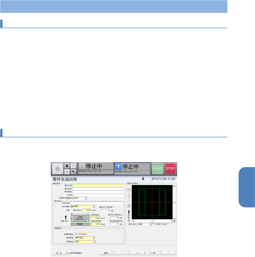 第 4 章 操作篇 4- 14. 数据创建步骤 4 4- 14. 数据创建步骤 4-14-1. 零件生成向导 这里介绍从获得 电子零件到创 建零件数据的步骤。 实际创建零件数 据时,请按照 各零件品种的步骤, 在理解创建零 件识别数据的作业后 ,创建对象电 子零 件的数据。 新建和已有数据的编辑 获得创建零件识 别数据所需的 电子零件,触摸主菜 单中的[零件 编辑],然后触摸零 件编辑的各个 功能 画面中显示的[ Wizard ],将显…