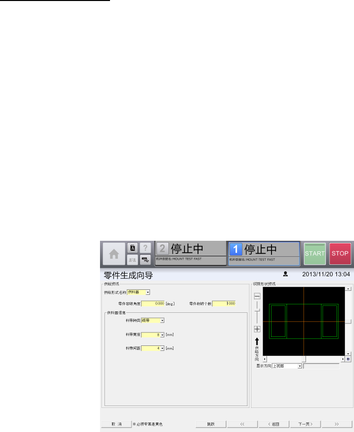 从下拉列表中分别选择[供料器信息]的[料带种类],[料带宽度],[料带间