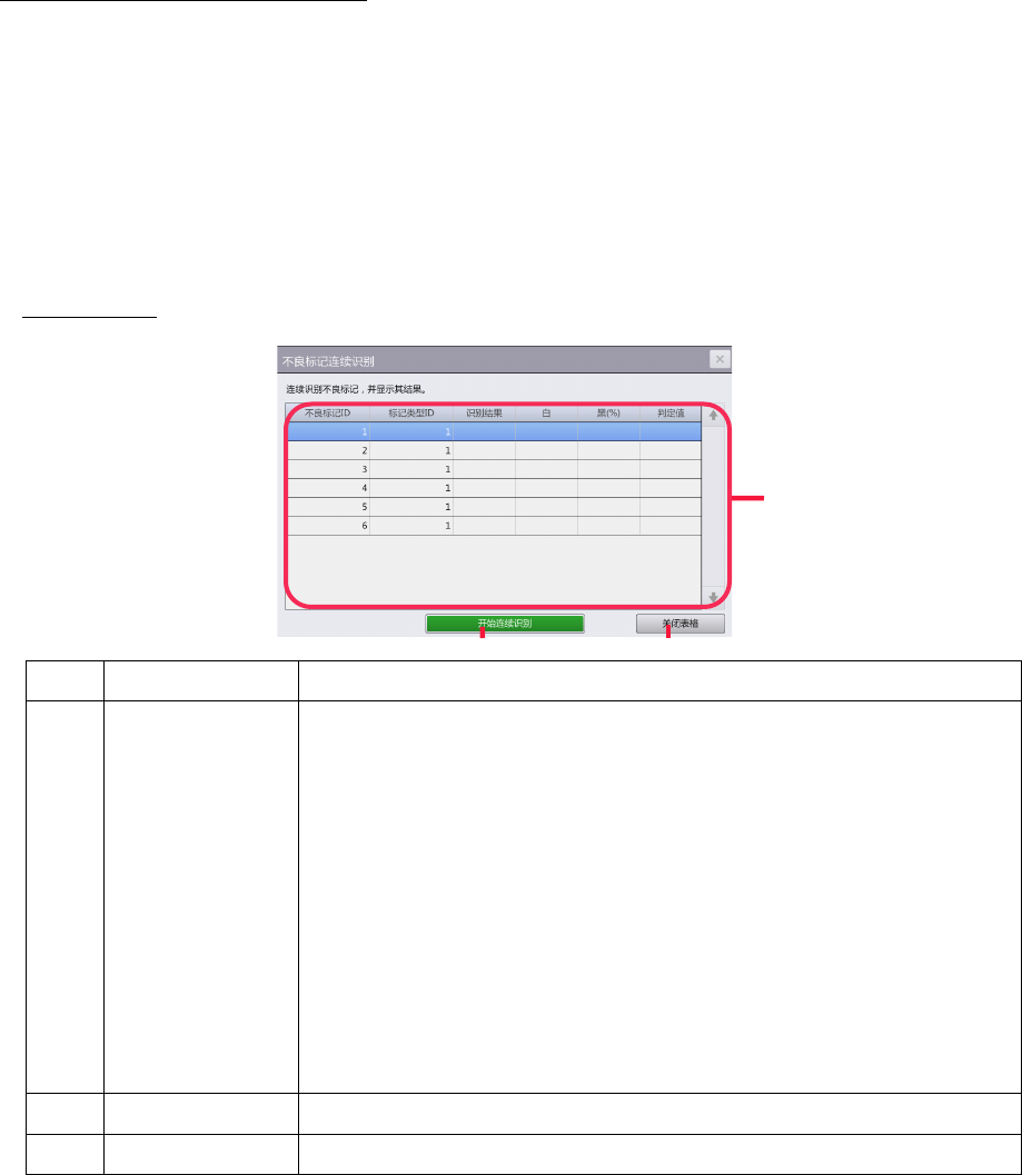 (b) 开始连续识别 连续执行连续识别结果列表中显示的不良标记识别。