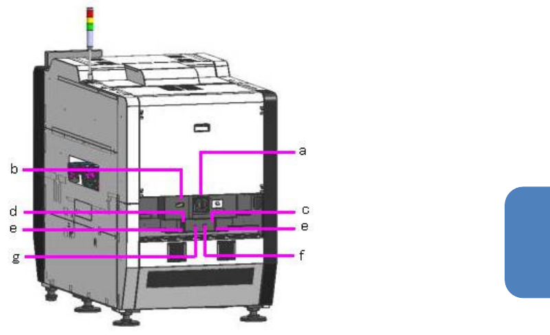 第 2 章 系统概要 2- 4. 机器的构成 后部 (a) 主断路器 (b) HM (c) I/F (SMEMA) -L (d) I/F (SMEMA) -R (e) USB 存储设备插入口 (f) LAN (g) S/IL 13 2