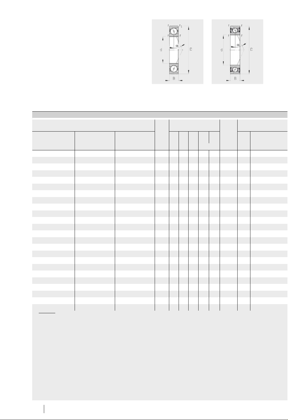 104 SP 1 Schaeffler Group Industrial 主轴轴承 大球或小球 钢球或陶瓷球 钢套圈或 Cro ni du r 套圈 开式或密封 00016F60 00016F61 1) 轴承型号的解释,见第 82 页,轴承型号 部分, 图 9 。 2) 解释,见章节 技术原理。 3) 最小油量润滑。 4) 尺寸表 (续)· 单位:mm 型号 1) 4) 质量 尺寸 接触角 安装尺寸 系列 719 系列 70 系列 72…