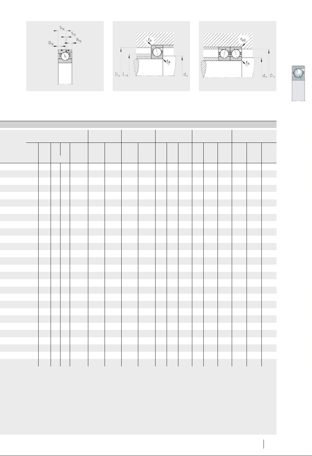 Schaeffler Group Industrial SP 1 119 DLR 设计 5) 安装尺寸 安装尺寸 00016F 6C 0001603B 0000A073 安装尺寸 基本额定载荷 极限转速 预紧力 2) F v 卸载力 2) K aE 轴向刚度 2) c a d a h12 D a H12 r a r a1 E tk 动载荷 C r 静载荷 C 0r n G 脂 n G 油 3) L M H L M H L M H max…