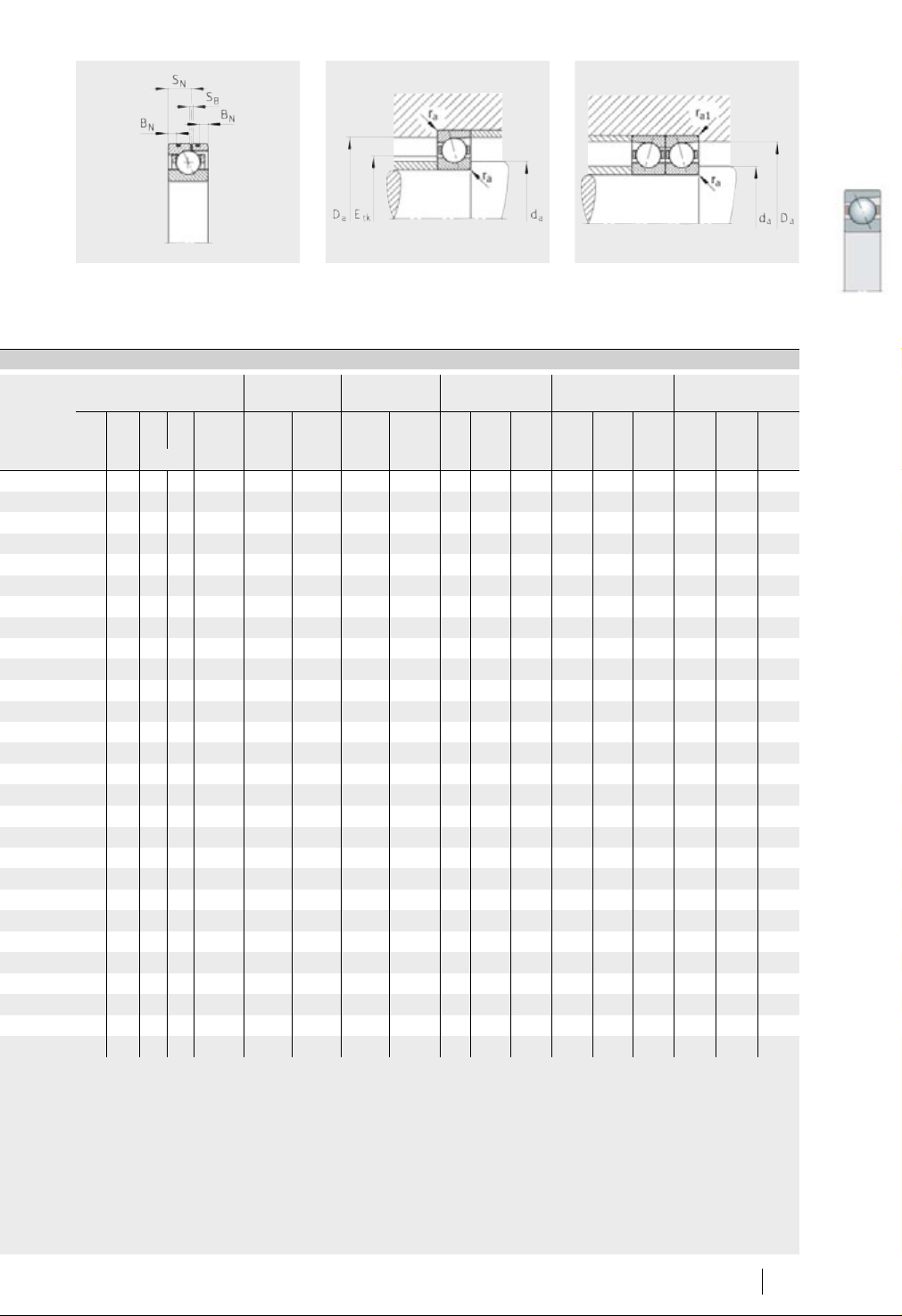 Schaeffler Group Industrial SP 1 121 DLR 设计 5) 安装尺寸 安装尺寸 00016F 6C 0001603B 0000A073 安装尺寸 基本额定载荷 极限转速 预紧力 2) F v 卸载力 2) K aE 轴向刚度 2) c a d a h12 D a H12 r a r a1 E tk 动载荷 C r 静载荷 C 0r n G 脂 n G 油 3) L M H L M H L M H max…