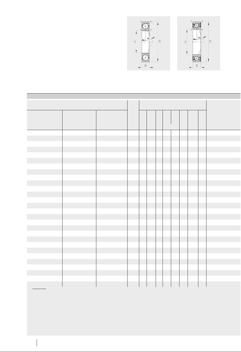 134 SP 1 Schaeffler Group Industrial 主轴轴承 大球或小球 钢球或陶瓷球 钢套圈或 Cro ni du r 套圈 开式或密封 DLR 设计 00016F60 00016F61 1) 轴承型号的解释,见第 82 页,轴承型号 部分, 图 9 。 2) 解释,见章节 技术原理。 3) 最小油量润滑。 4) 5) 尺寸表 (续)· 单位:mm 型号 1) 质量 尺寸 接触角 系列 719 4) 系列 70 …