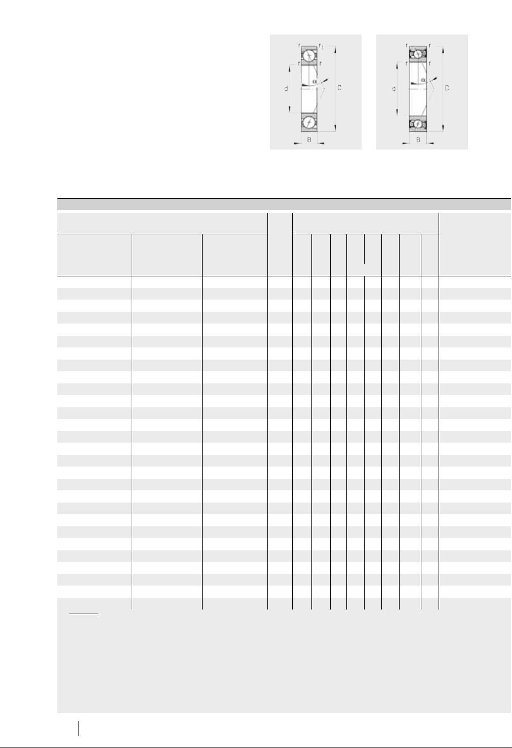 144 SP 1 Schaeffler Group Industrial 主轴轴承 大球或小球 钢球或陶瓷球 钢套圈或 Cro ni du r 套圈 开式或密封 DLR 设计 00016F60 00016F61 1) 轴承型号的解释,见第 82 页,轴承型号 部分, 图 9 。 2) 解释,见章节 技术原理。 3) 最小油量润滑。 4) 5) 尺寸表 (续)· 单位:mm 型号 1) 质量 尺寸 接触角 系列 719 4) 系列 70 …