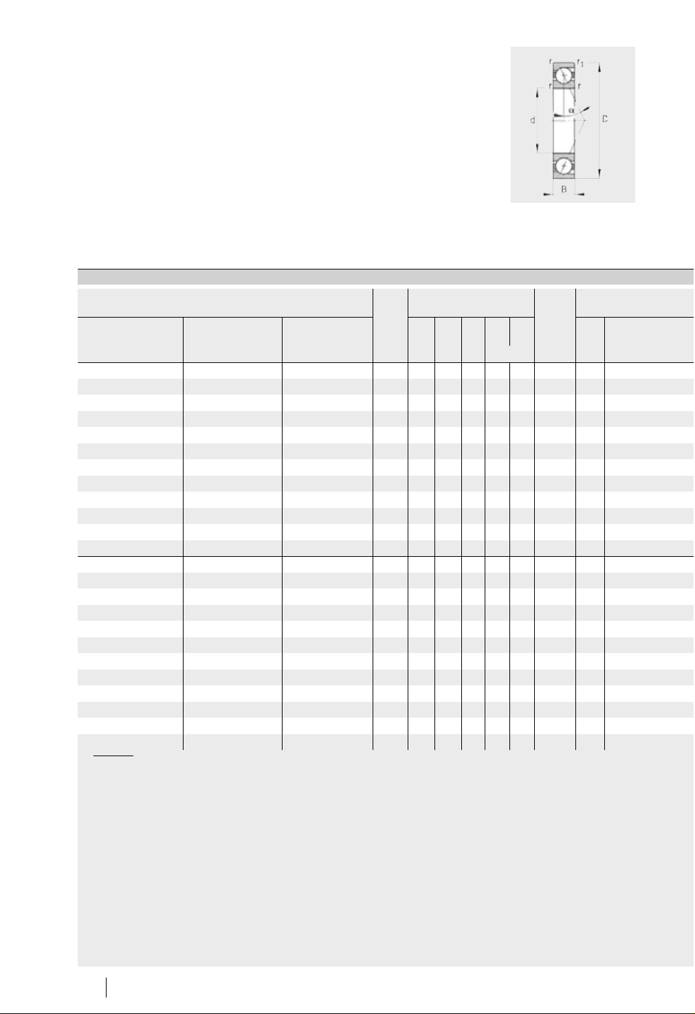 150 SP 1 Schaeffler Group Industrial 主轴轴承 大球 钢球或陶瓷球 钢套圈 开式或密封 00016F60 1) 轴承型号的解释,见第 82 页,轴承型号 部分, 图 9 。 2) 解释,见章节 技术原理。 3) 最小油量润滑。 4) 也可供应带有间隙密封的轴承。 订货示例: B7028-C - 2RSD- T-P4S-UL 。 尺寸表 (续)· 单位:mm 型号 1) 质量 尺寸 接触角 安装尺寸 系…
