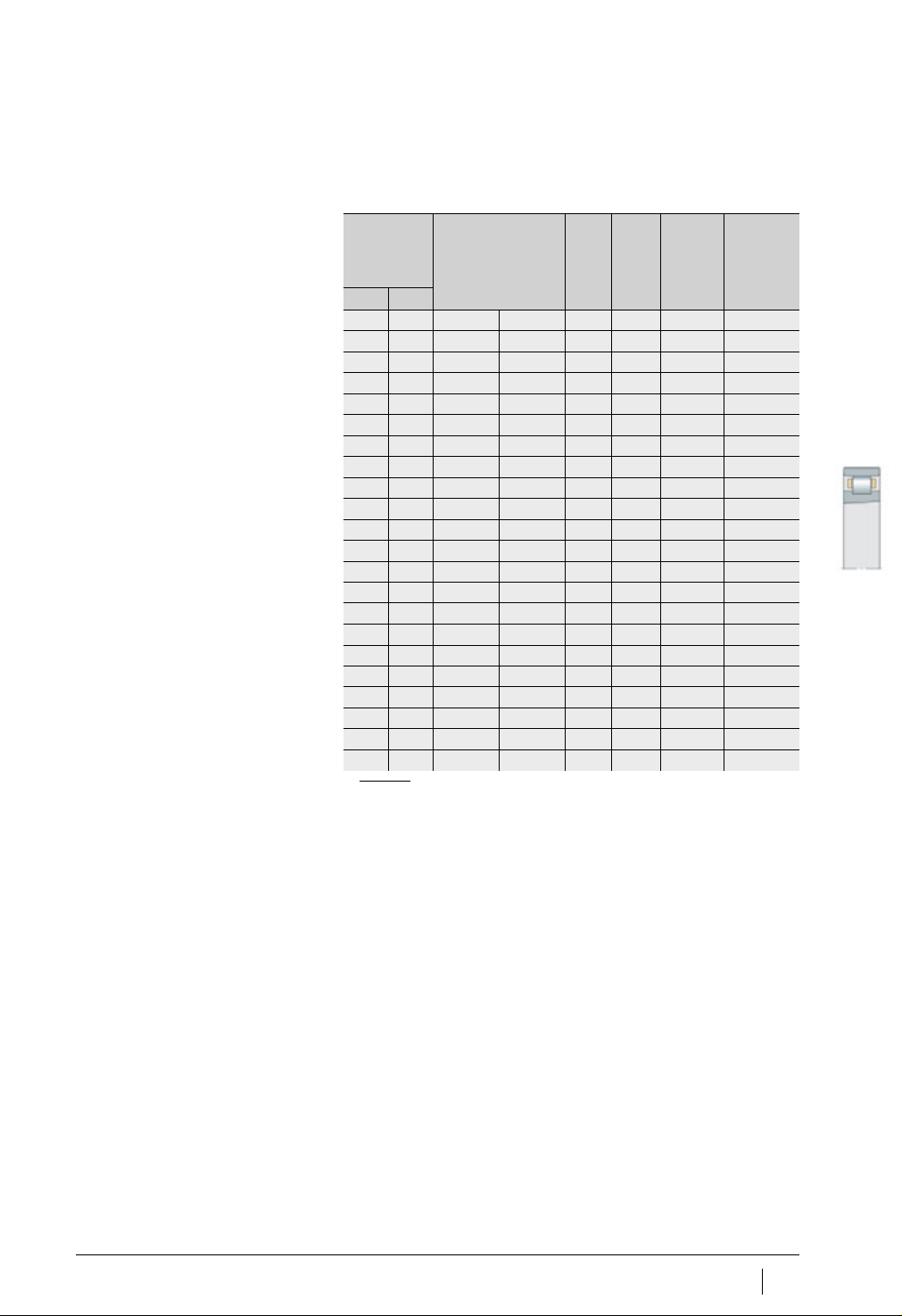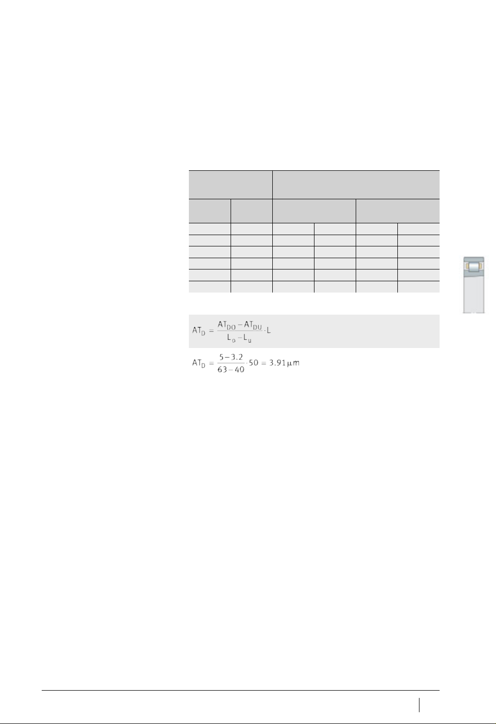172 SP 1 Schaeffler Group Industrial 超精密圆柱滚子轴承 锥形轴的公差 用于公差等级 UP 1) 与轴的公称直径 d 有关,参见计算实例: 部分。 轴的公差 用于公差等级 SP 的轴承 对于圆柱滚子轴承,锥形轴的公差可按下面例子进行计算。 计算实例: 轴的公称直径 (轴承孔径) 锥轴小端直径偏差 1) 圆度 平面度 轴向跳动 平均粗糙度 d mm m m m m m 大于 至 t …