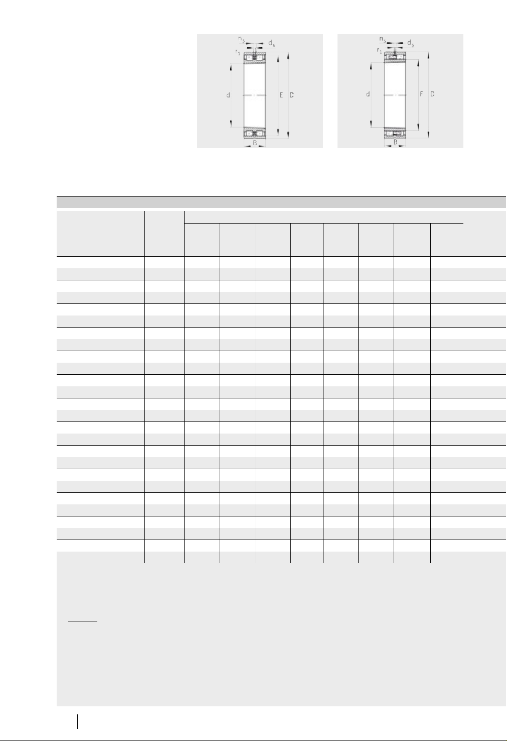 200 SP 1 Schaeffler Group Industrial 超精密 圆柱滚子轴承 双列 NN30 NNU49 00016CA5 00016CA6 1) 也提供圆柱孔的轴承,如: NN3052-AS-M-S P 。 2) 轴向位移。 3) 最小油量润滑。 尺寸表 (续)· 单位:mm 型号 1) 质量 尺寸 m d D B r 1 E F n s d s ⬇ kg min. NNU4952-S-K-M-SP 29.7 260…