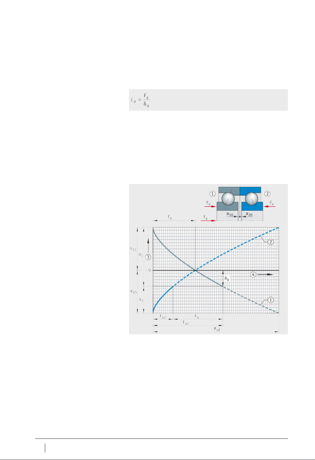 20 SP 1 Schaeffler Group Industrial 刚性 轴承组的刚性取决于轴承的布置和预紧。机床整体系统刚性不仅 取决于轴承的刚性更取决于轴和轴承座的刚性。在实际应用过程 中,可以通过安装和操作的方法来增加刚性。 轴向刚性 轴向刚度 c a 是轴向载荷与轴向位移的比值。 c a N / m 轴向刚度 F a N 轴向载荷 a m 轴向位移。 轴向刚度值,请看章节 主轴轴承和推力角接触球轴承中尺寸表。 卸…