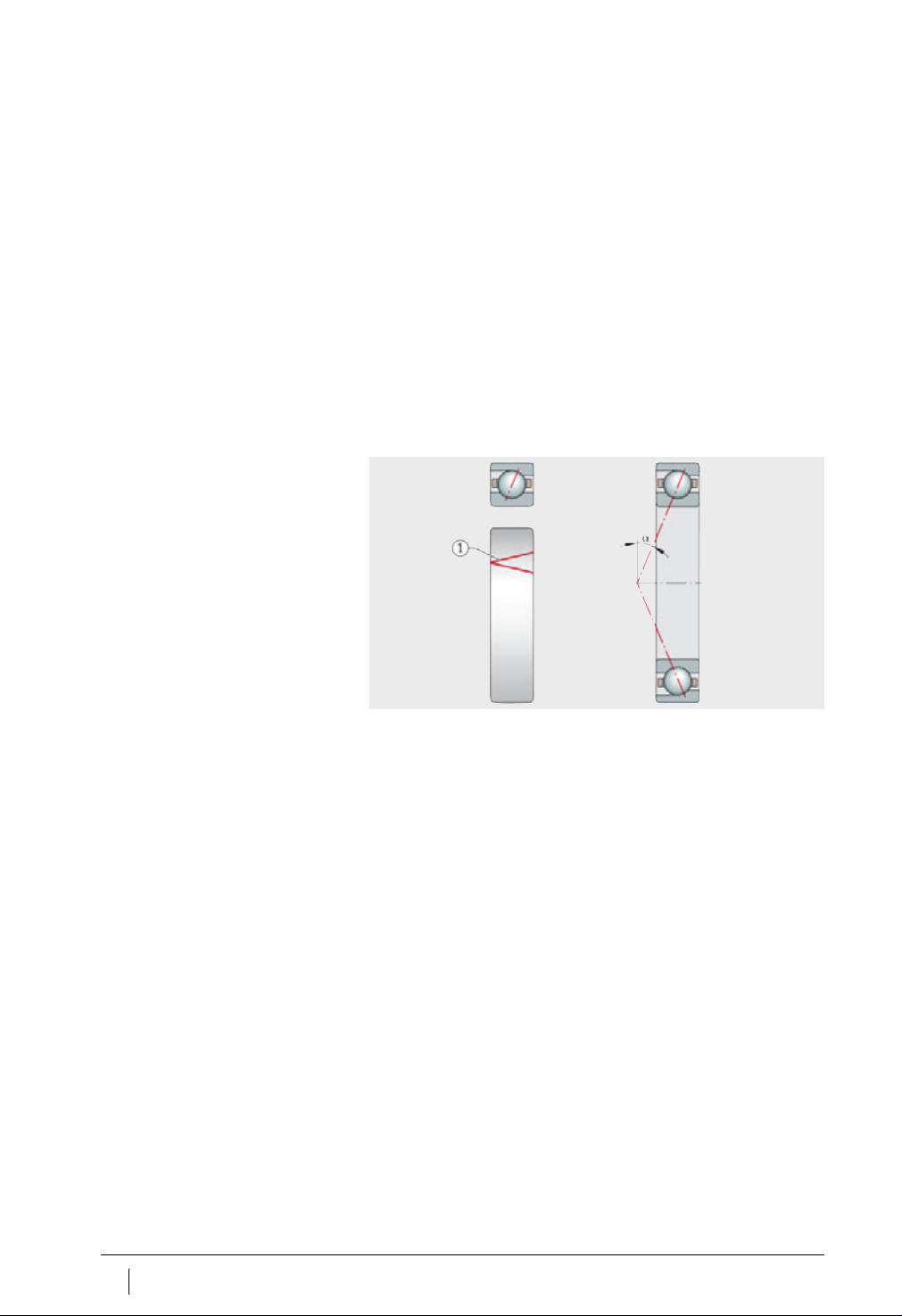 76 SP 1 Schaeffler Group Industrial 主轴轴承 承载能力和接触角 万能配对轴承能承受单向轴向载荷和径向载荷。 O 型和 X 型布置的主轴轴承能承受双向轴向力以及力矩, 第 75 页, 图 3 。 串联布置的主轴轴承只能承受单方向的轴向载荷, 第 75 页, 图 3 。 接触角 接触角表明轴承的轴向承载能力。当接触角增大,对应的轴向 承载能力也增加。 FAG 主轴轴承可提供的接触角有: ■ = 15°…