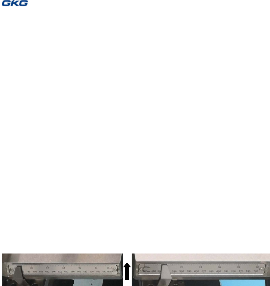 2) 根据网框尺寸大小移动网框支承板,至标尺指示钢网相应刻度位置,再将网板锁紧。