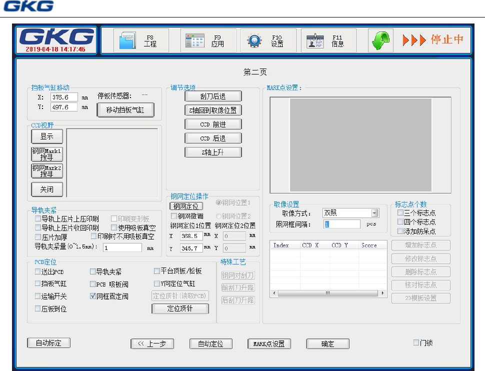 CCD 视野栏:放入钢网时,用来显示钢网和 PCB 图像,便于钢网定位。