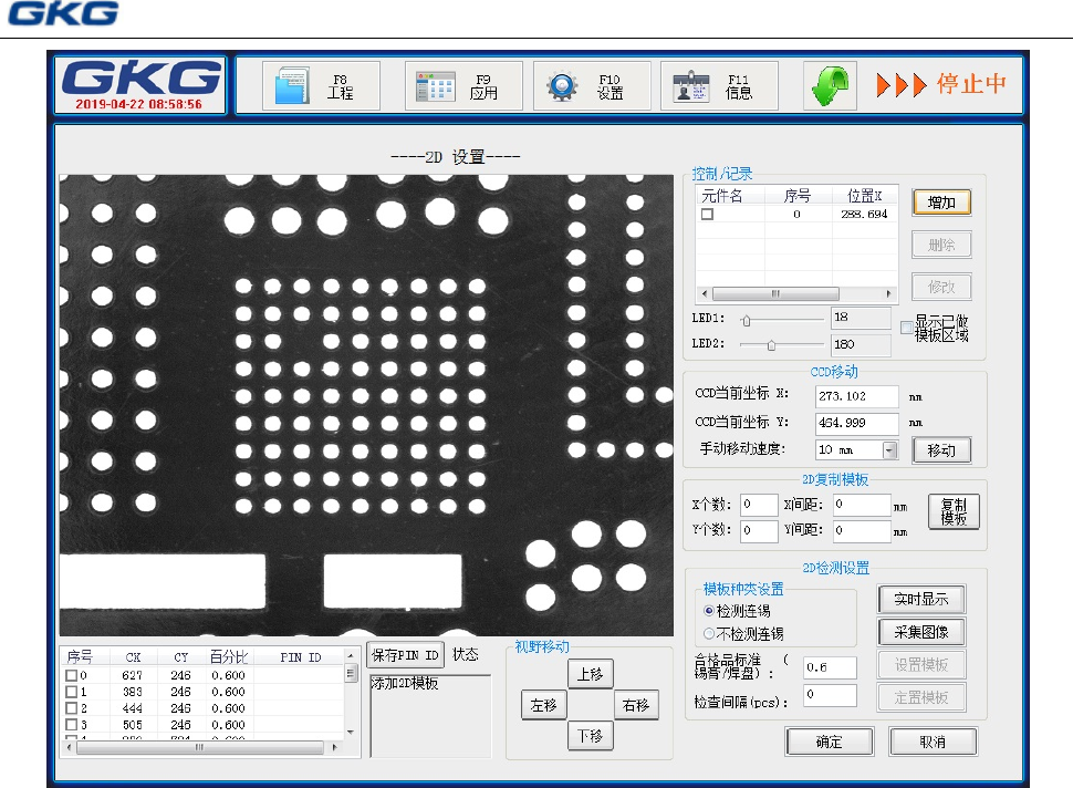 3)增加 2D 模板:单击[2D 设置]对话框中的“增加”按钮,移动 CCD X Y,找到 2D