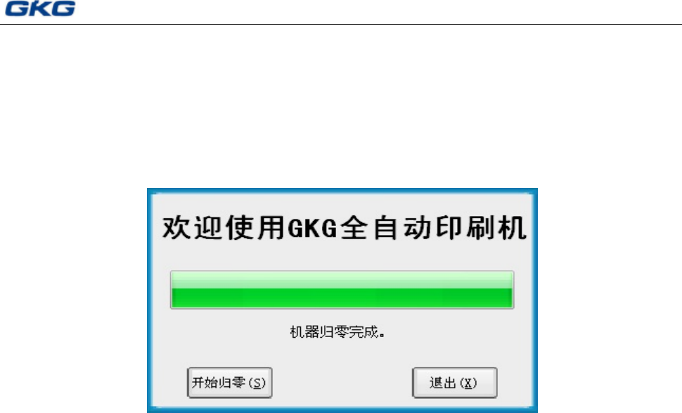 归零”按钮,机器进行归零操作,图中进度条会以绿色实时显示归零进度,未完成归零操作,