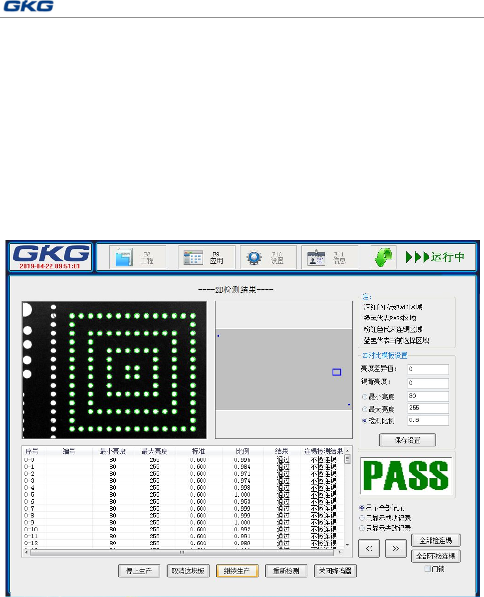 毕后,机器进行 2D 检测,并在界面上显示是否通过检验。被绿色图框罩住的模板,表示检验