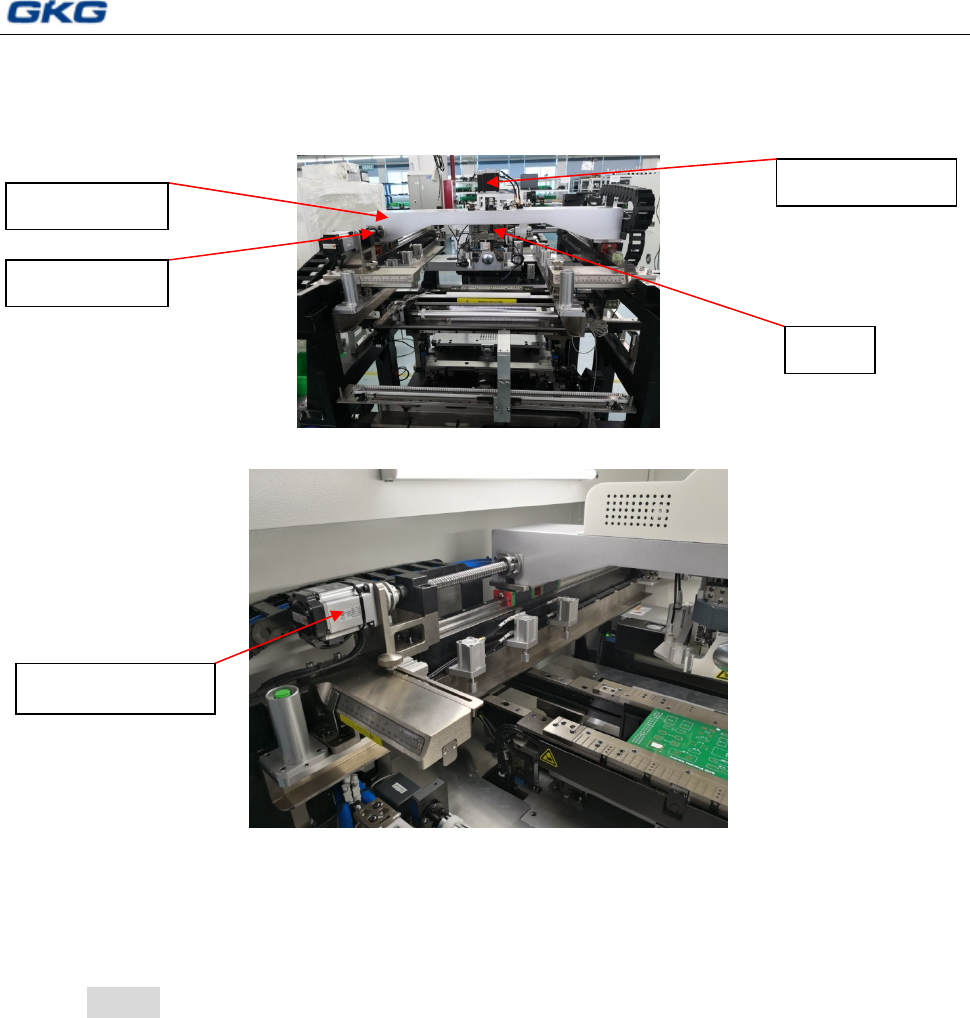 东莞市凯格精机股份有限公司 89 8.4.2.2 刮刀驱动部分 1.对丝杆和线性滑轨进行加油润滑。 2.刮刀为 3Kg 压力时限位螺钉距离线性轴承座底部约 2mm。 图 8-4 刮刀驱动部分 8.4.3 印刷工作平台部分 8.4.3.1 工作平台 1) 用干净的棉布沾少许清洗液对顶销,支持块,工作平台进行清洁; 2) 对 X,Y1,Y2 的感应器进行清洁; 3) 小心: 不要使用有机溶液:氨水、苏打水或苯清洁传感器。 4) 取下工作台前…
