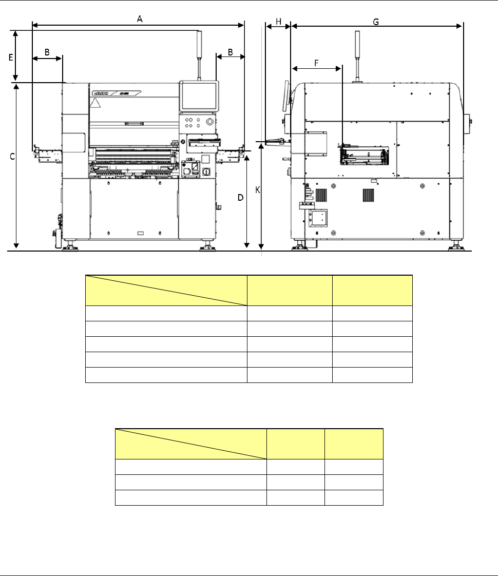 9 4-2-2 外形尺寸(最大凸起部位除外) 单位: mm 基板 规格 尺寸 标准规格 长尺寸规格 A (传送长度 ) 1,920 2,520 B (传送 出量) 260 560 E ( 信号灯高度 ) 470 470 F ( 从护罩 前面至 基板传送通道 ) 484 484 G 装置内侧( 不含 突起 部分 ) 1,580 1,580 ※上述尺寸的公差 为 ±5mm 。 单位: mm 传送高度 尺寸 900mm 950mm C (从地…
