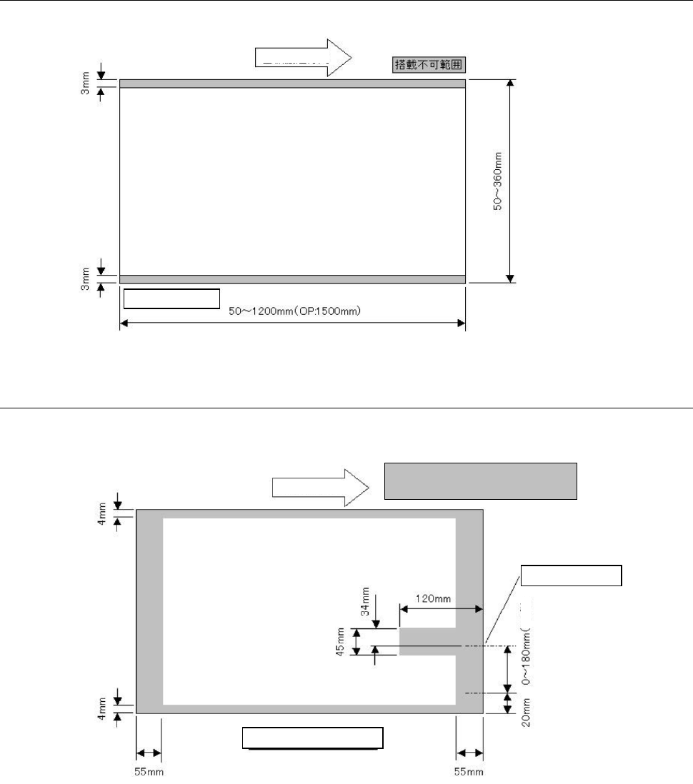 注 1:基板传送方向为反方向(向左)时,支撑销不可设置范围与上图呈左右对称。