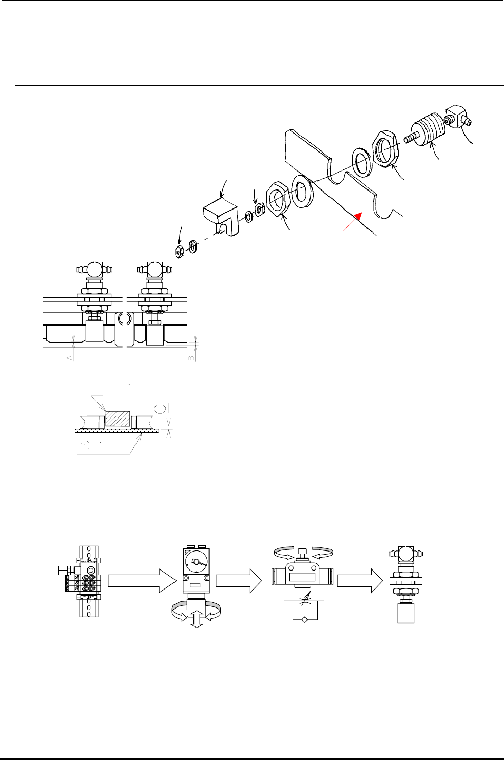 ② 把Y推顶器和传送皮带之间的间隙调整为C=
