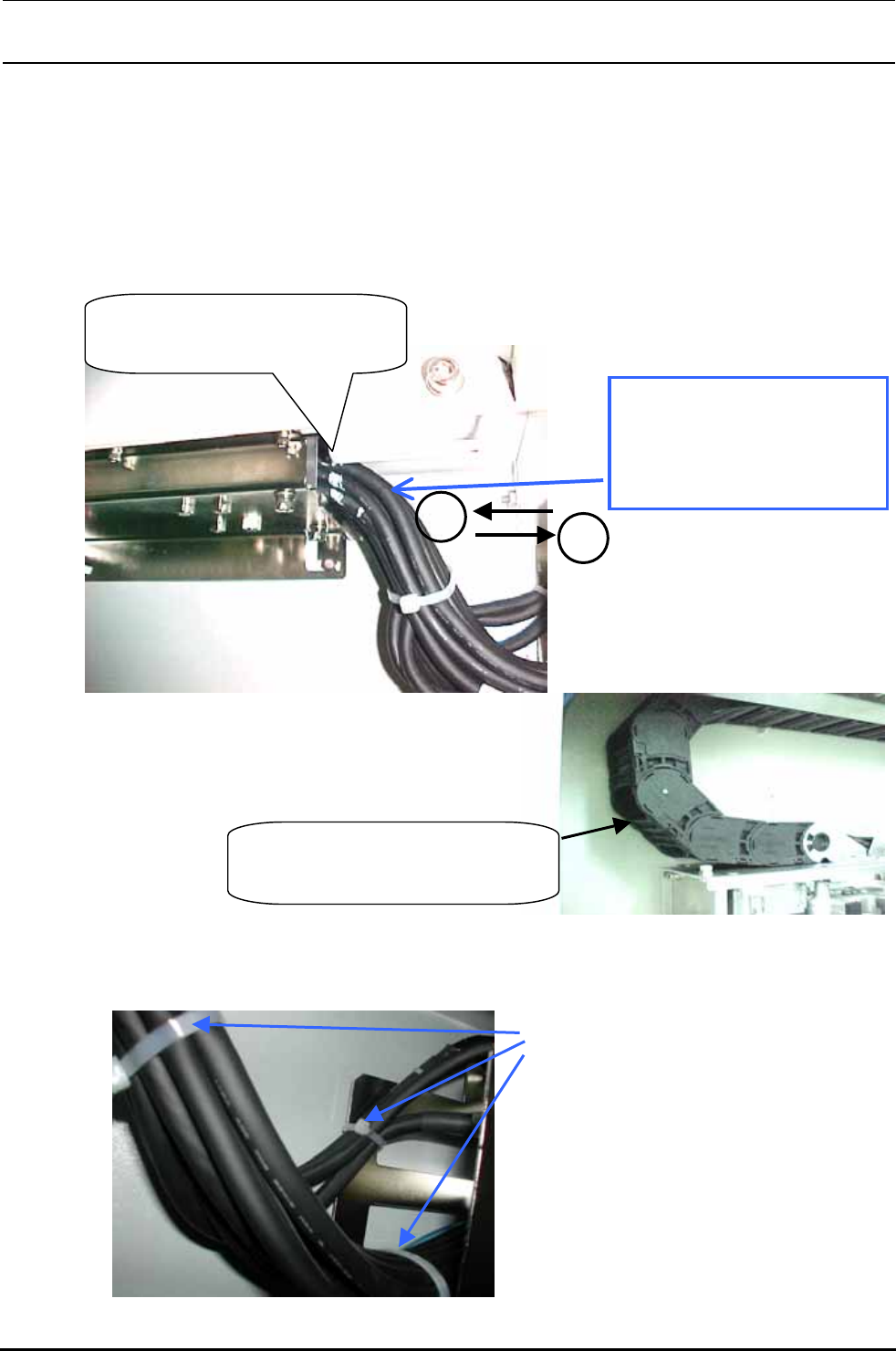 2)参照上图,夹紧各电缆。束线带(大)用于 FC 导承,其他用束线带(小)。夹紧电缆时,不要