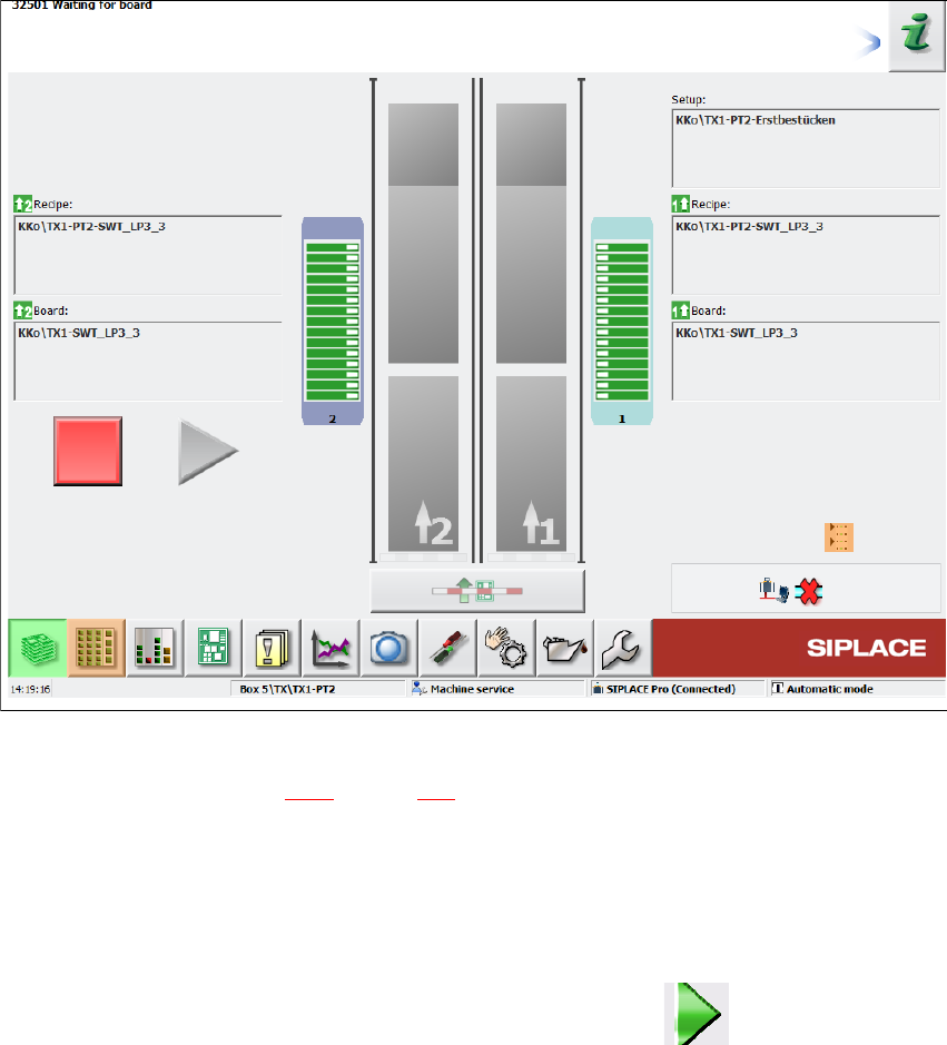 Fig. 5.3 - 1 La vista"Produzione" dopo il caricamento del software della stazione (l'esempio è riferito a SIPLACEX4i)