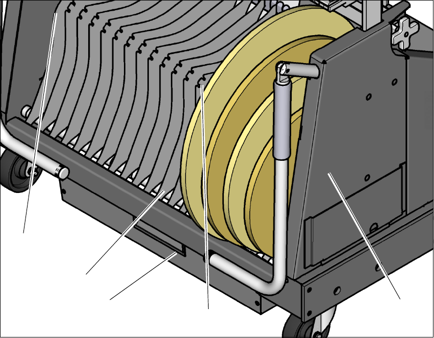 Fig. 5.9 - 3 Divisori in lamiera nel contenitore delle cinghie