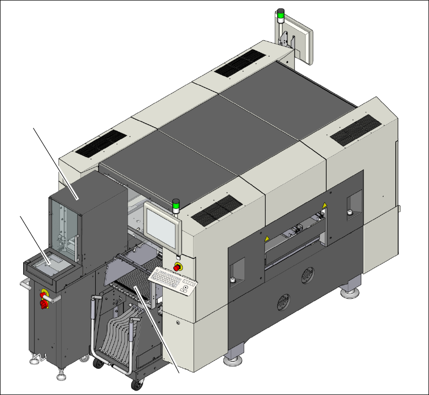 Istruzioni per l'uso SIPLACE SX1/ SX2 6 Estensioni della stazione A partire dalla versione software SR.710.0 E dizione 12/2016 6.2 Waffle Pack Changer (WPC5/WPC6) 317 6.2.2 Panoramica WPC5 Articolo n. 001 19827-xx W…