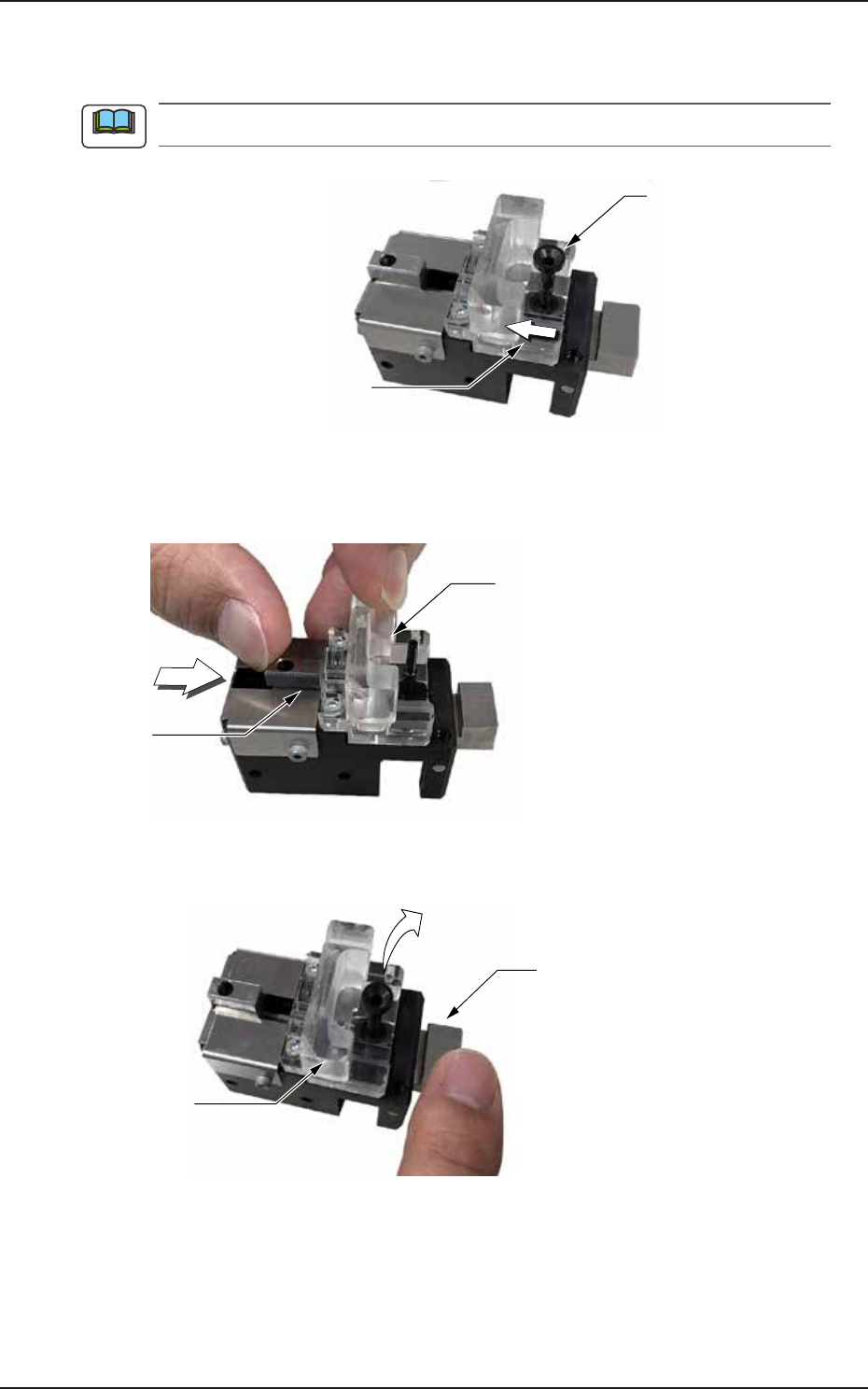 (4) Press the acrylic block and move the slider in the direction of white arrow to insert the