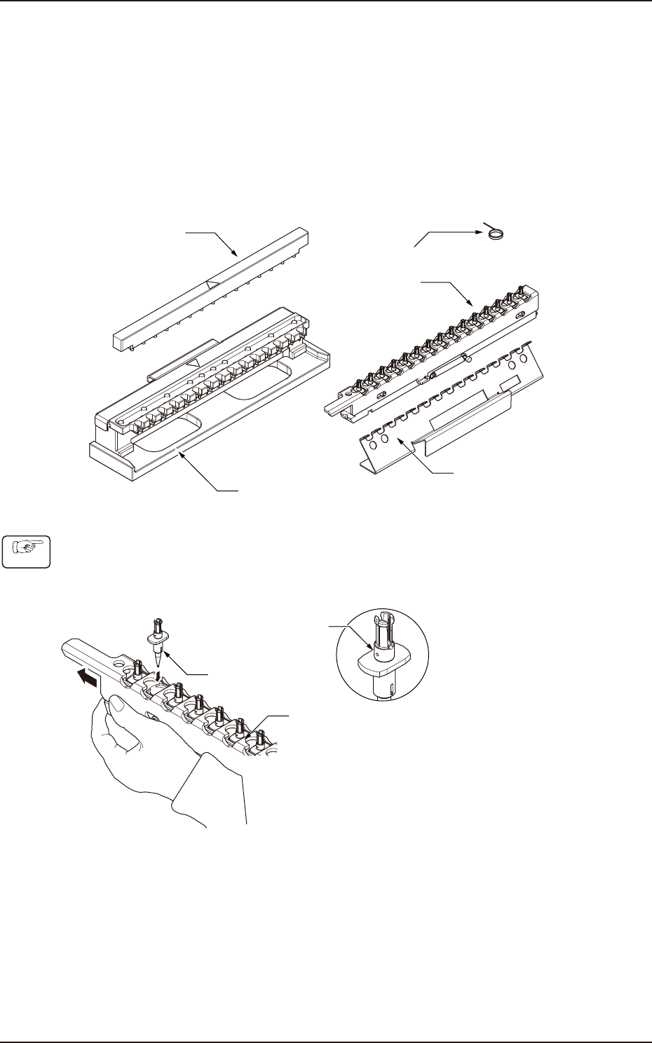 EUKYX 1-71 199-4100 5.7 Nozzle Filter Insertion Procedure (3) Inser t the nozz le into the nozz le set position. At this time, face the n o zz le cle arance for nozzle filt er must fac e toward the acr ylic bl ock (in th…
