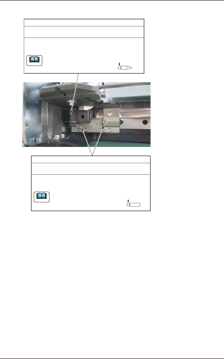 EUKYX 1-34 199-4100 4.6 Cutter Section (5 ) Remove hex socket he ad cap sc rew s (2 each on l ef t and right) mounting the up per slo pe. Deta ch the up per slo pe. Hex socket head cap screws Upper slope F4A27D (6 ) Remo…