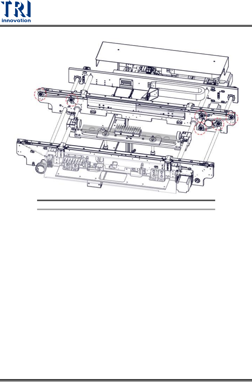 Test Resear ch, Inc. TR7710 User Guide – Mainten ance 23 5 月保養 本章節將針對每月所需 的保養內容進行說明。依 照下列項目定期實施保養可 確保機台長期維持 良好之精度外且可改善 機台操作效率。 警告: 除特別提到的部分 ,保養維護之動作須在電 源關閉時操作, 不正確的 動作可能造成人員 機械或電擊的傷害。 5.1 機台內部 5.1.1 板寬調整螺桿清潔及防鏽 將板寬調整螺桿塗清…