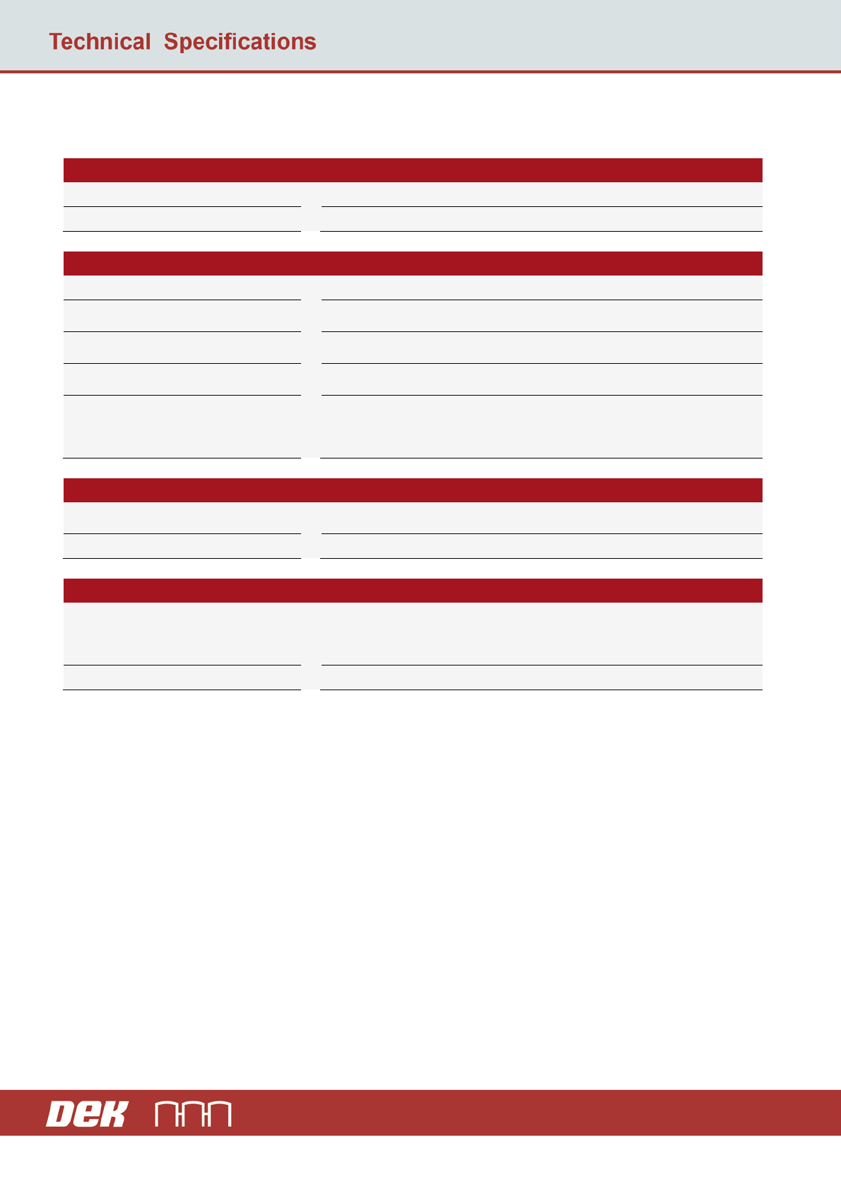 4 DEK Horiz on 8 EE Machine Standar d Configuration Operating Environment Specification Temperat ure 10° to 35° C (50° to 95° F) Humidit y 30% to 70 % relative humidity ( n on - condensing) Services Specification Voltag …