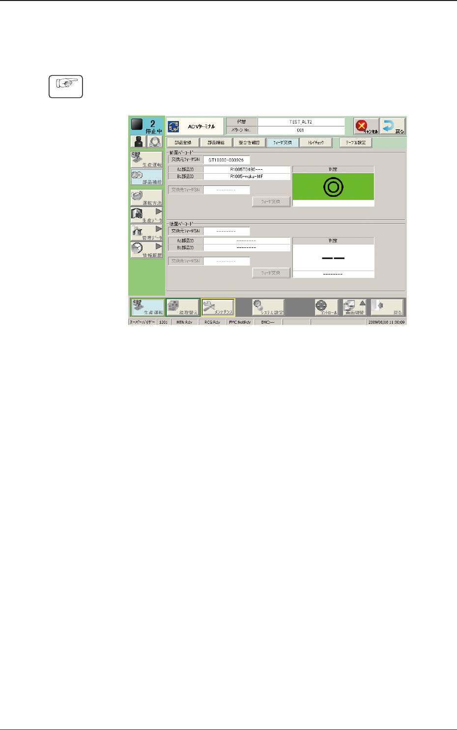 ボタンを押して、“フィーダ交換”画面を表示させる。