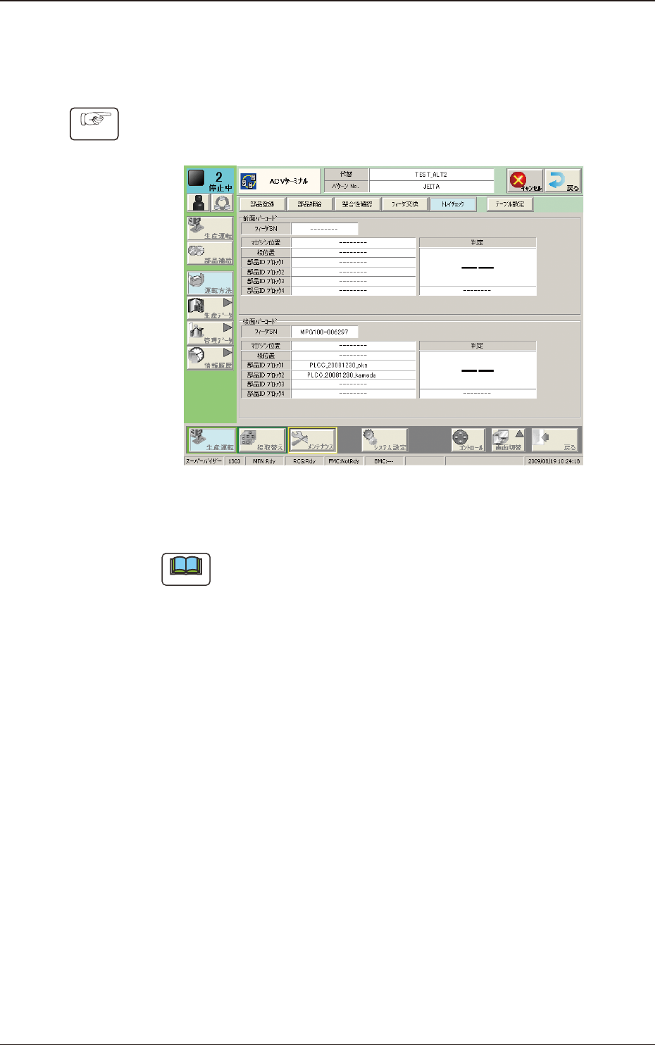 OM-1761 26 1303-001 8.4 フィーダ交換 登録済みのフィーダを別のフィーダと交換します。 手順 (1) “部品登録” 、 “部品補給” または “整合性確認” 画面で [ フィーダ交換 ] ボタンを押して、 “フィーダ交換”画面を表示させる。 “フィーダ交換”画面 F14 (2) 交換元の部品についているバーコードのシリアル番号を読取る。 (3) 交換先の部品についているバーコードのシリアル番号を読取る。 (4) […
