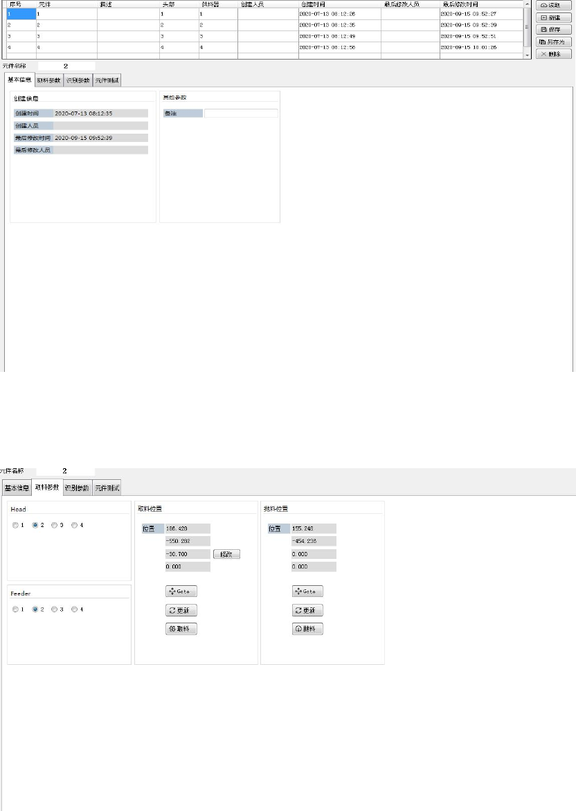 位置。 3. 识别参数 本选项页定 义视觉识别相 关的参数。 识别位置: 元件识别时各 轴位置。 视觉参数: 元件识别视觉 参数。