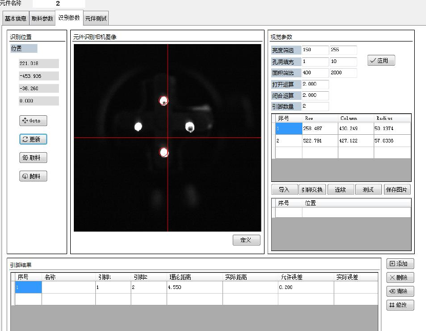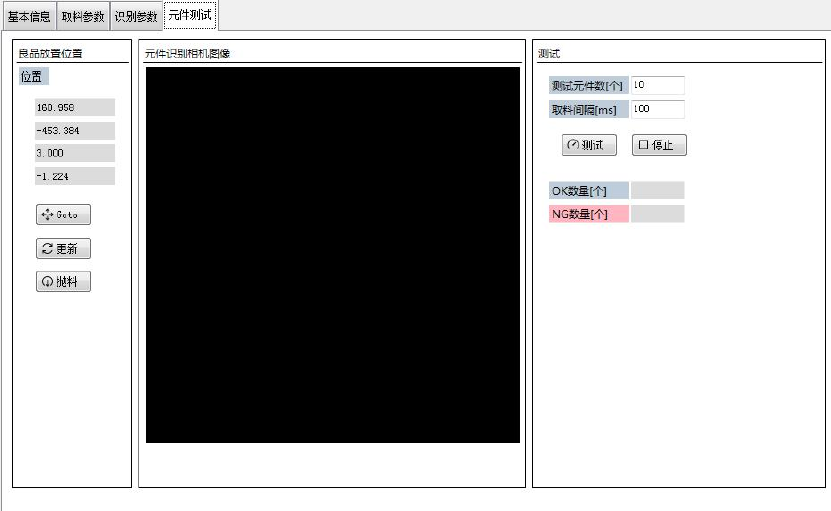 本选项页对元件进行测试。可以按照指定条件,自动取料,视觉定