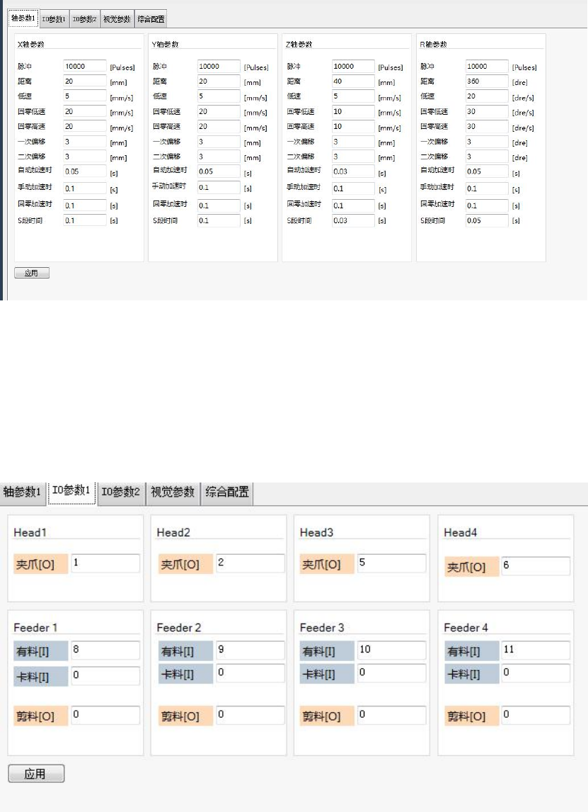 本选项页设定轴的相关参数:电机每转的脉冲数,丝杆的螺距,轴的