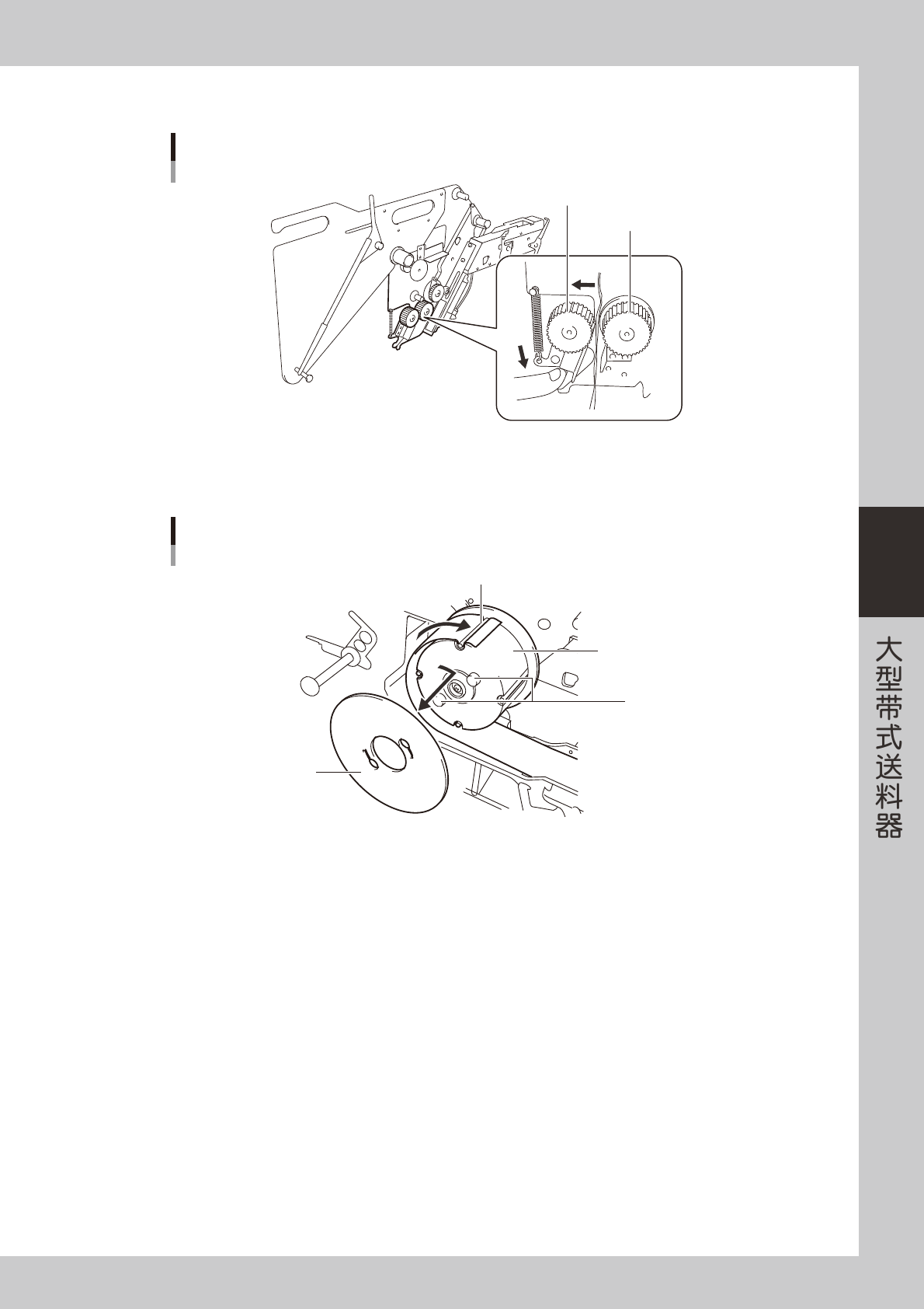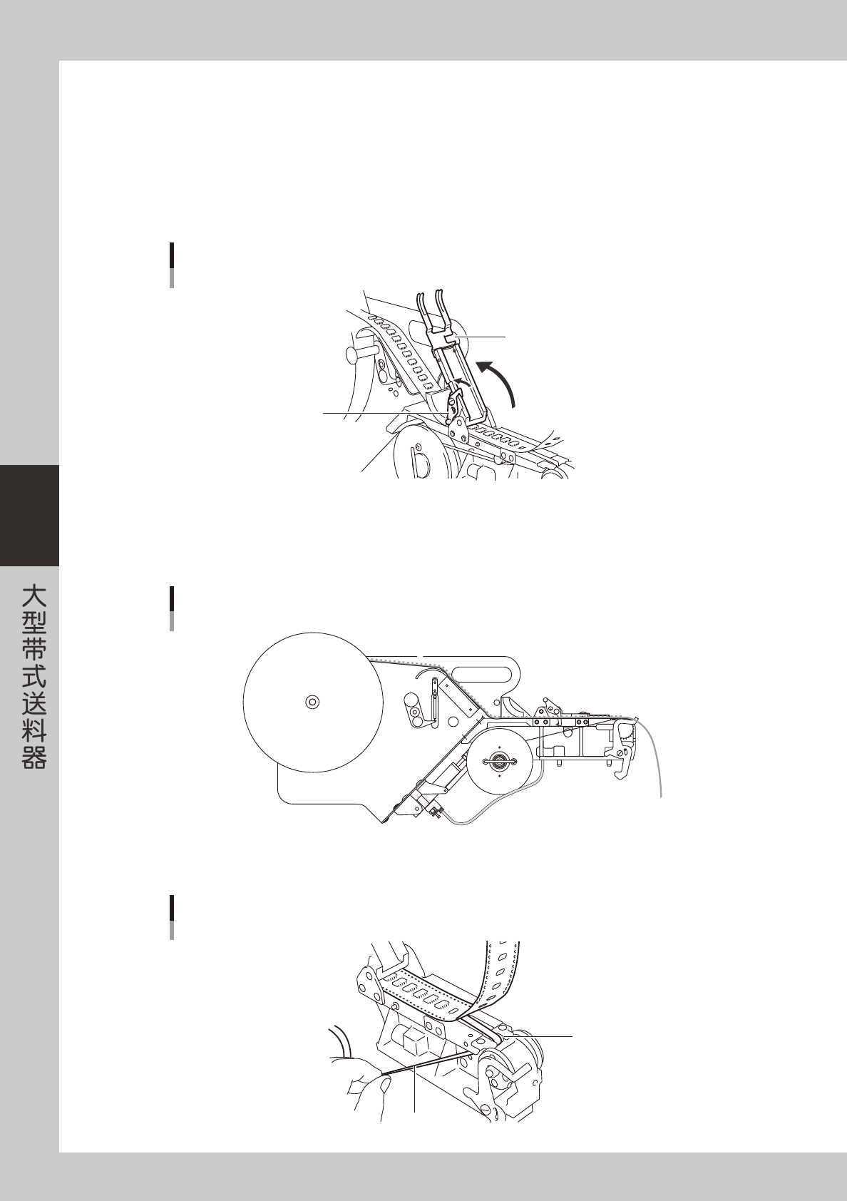 拆下侧板,将盖带夹入卷绕滚轮的压带处。再按相反的步骤固定侧板。