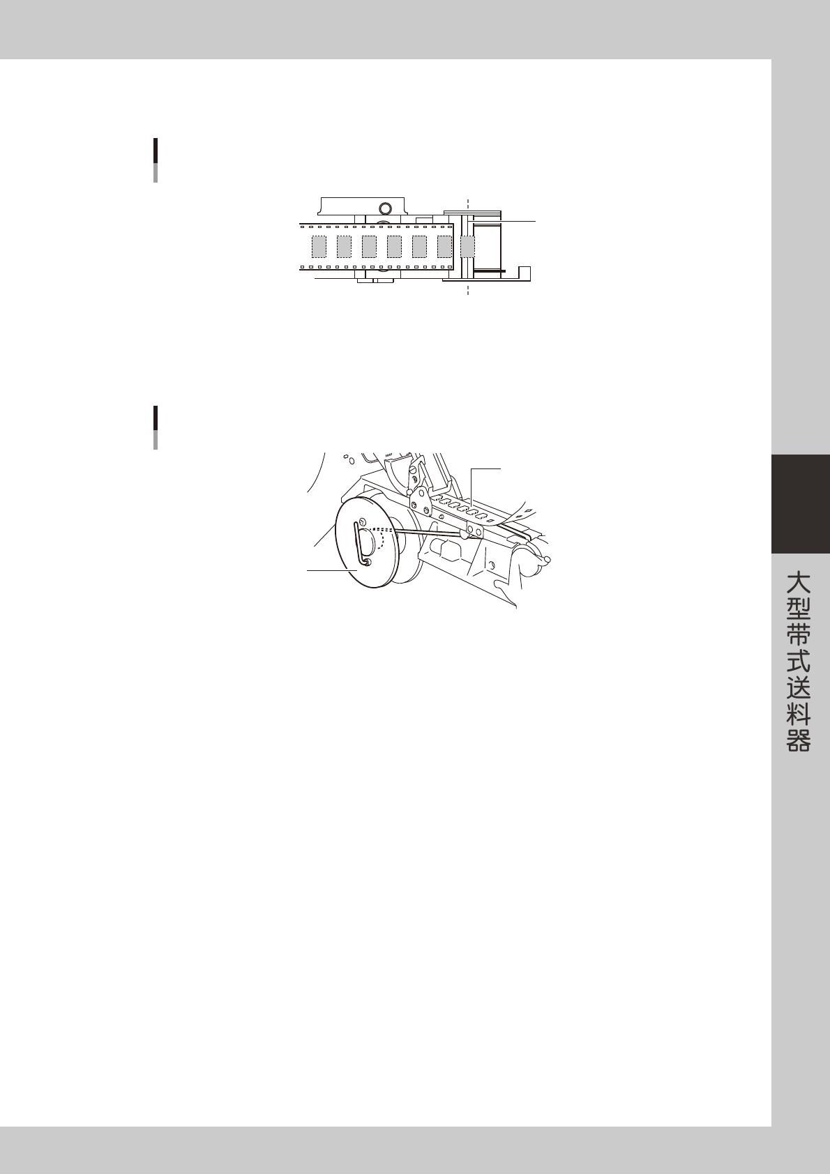 安装基带时,务必将导带孔扣在料带传送齿轮上。带式送料器上有标示元件吸附位置的直线。