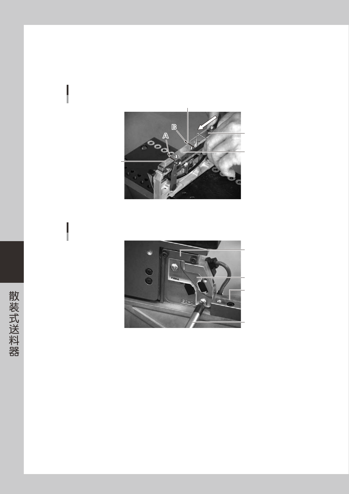 1. 先安装压料板。在滑板开关关闭时与压料板之间没有空隙的状态下 ( 滑板无法退回的位置 ),拧紧固定