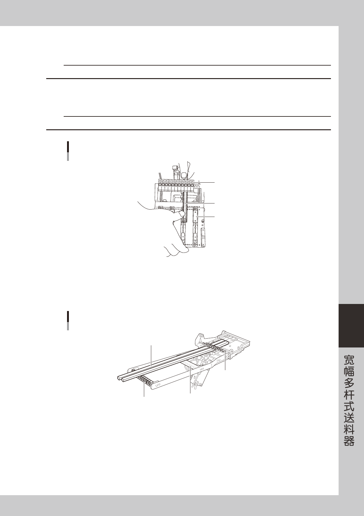 将料杆穿过料杆压板 A 上方和料杆压板 B 下方,插入传送轨。