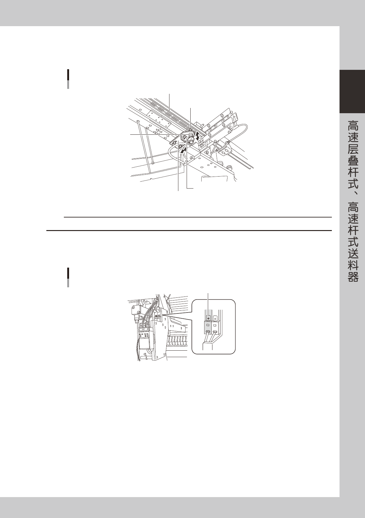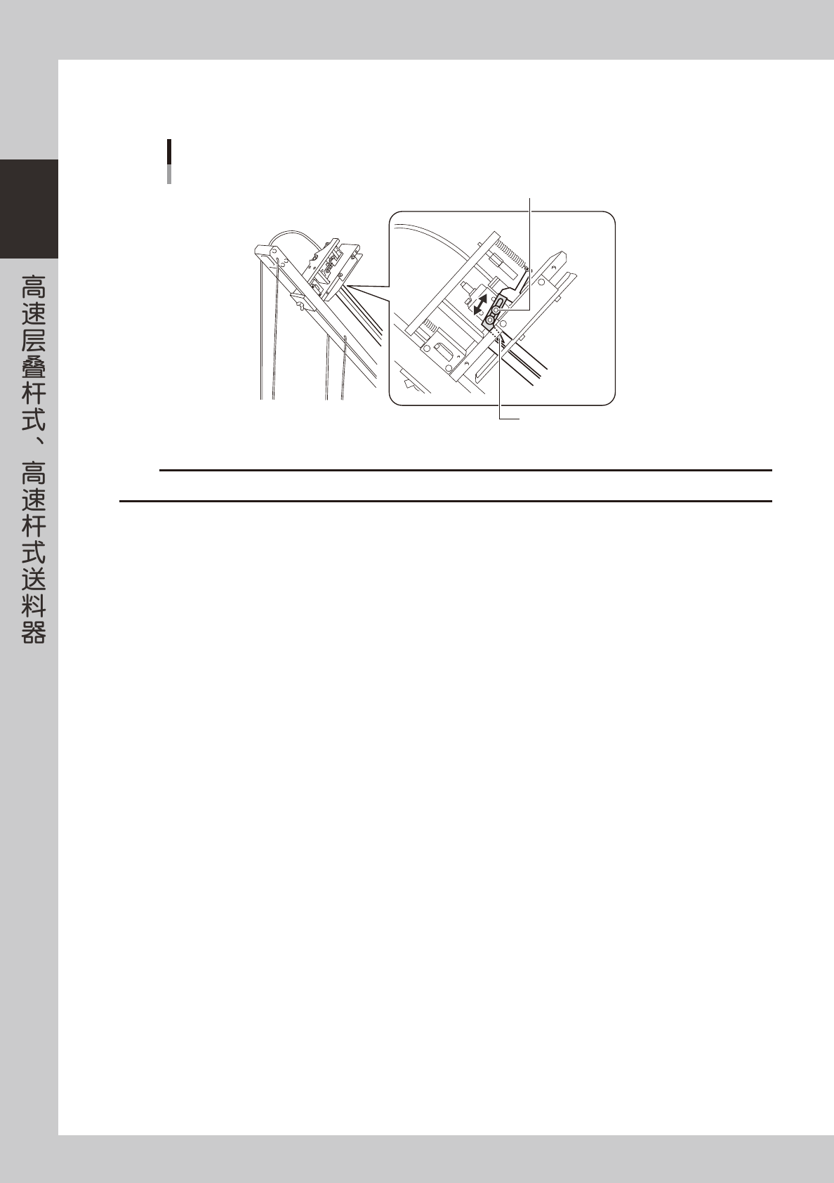 如料杆可能脱落时,必须调节料杆压板。将弹簧片调至有适当张力使料杆不会脱落的位置后,固定螺钉。