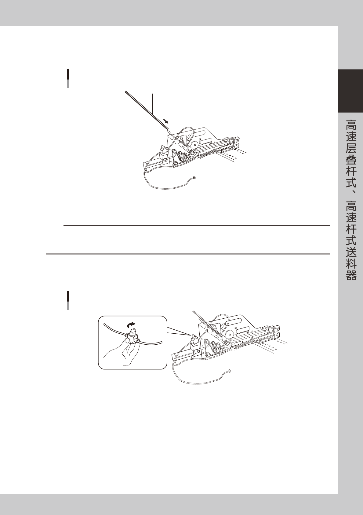 用感应料杆有无的传感器的高度固定板调节高度,使传感器的光束照射在从下至上的第 2 根料杆上。