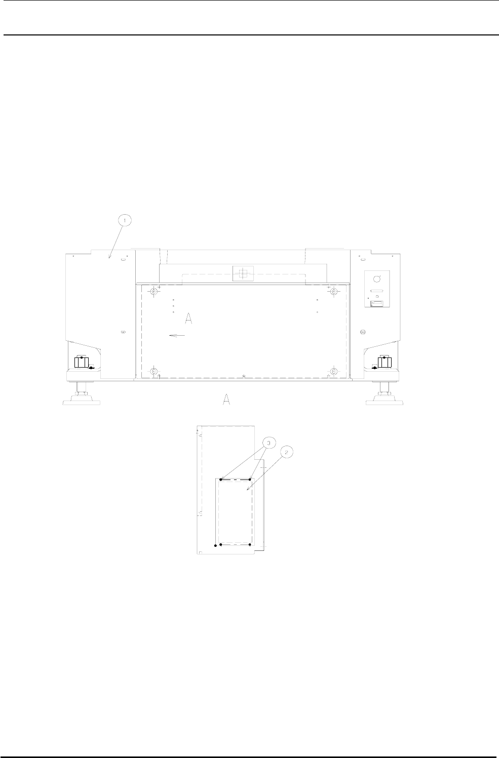 Rev.1.00 安装要领书 11. 电源电缆线的连接 11-1. 2050/2060 标准机 < 程序 > 1. 连接电源电缆线之前,请确认配电盘的断路器关闭等,连接电源电路的电源应被切断。 1. 卸下 ① 护罩 RBL 的 ③ 的螺丝,卸下 ② 的安装护罩。 22