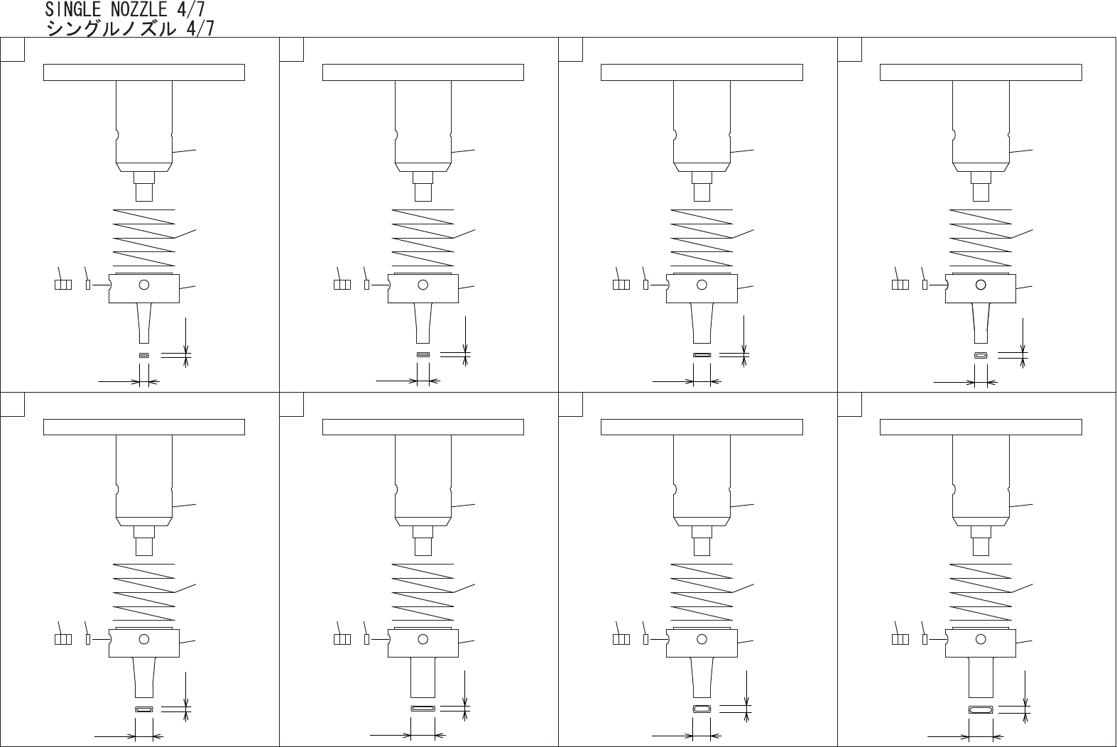 SINGLE NOZZLE 4/7 シングルノズル 4/7 No. Drg.No. & Code No. QTY Description Rating Materials Remarks 番号 図番 & コード番号 個 数 品名 規格 材質 備考 1 ADNPN7420 1 HOLDER ホルダ OT 2 DEPN3241 1 SPRING スプリング FE 3 K5613B 2 BLOCK 駒 SS-301E OT …