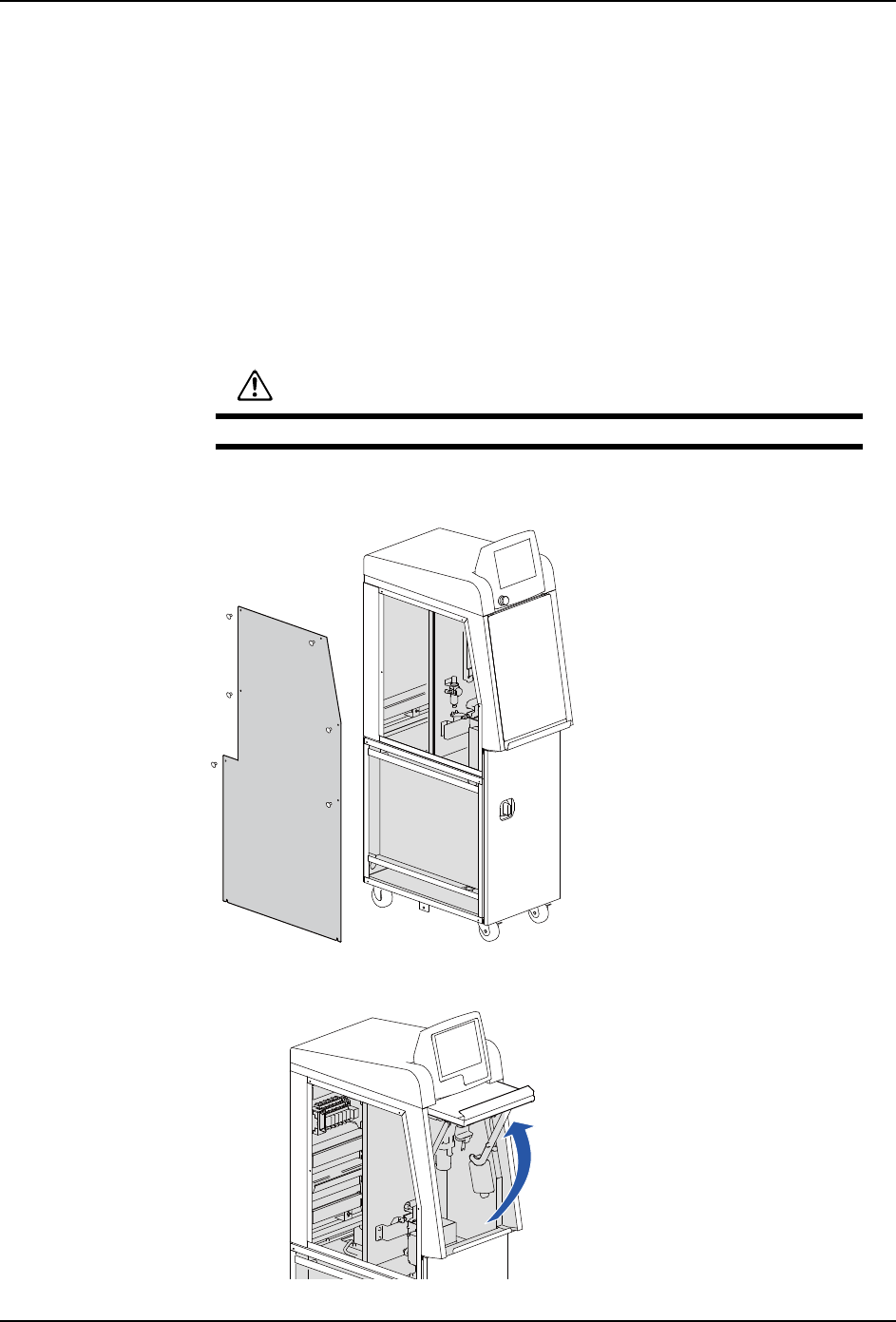 INS-HDCLN-002S0 4. 安装 工作头自动清洗机使用说明书 15 4. 安装 说明电源线和供气管的连接方法 。 4.1 拆除搬运用固定支架 在工作头自动清洗机中安装着 固定用的支架 (红色) 。请全部拆除这些支架。 a. 固定回收箱的支架。 b. 将工作头自动清洗机固定在集装箱 的支架。 除了移动工作头自动清洗机的时 候,平时请锁定脚轮。 01NST -2617