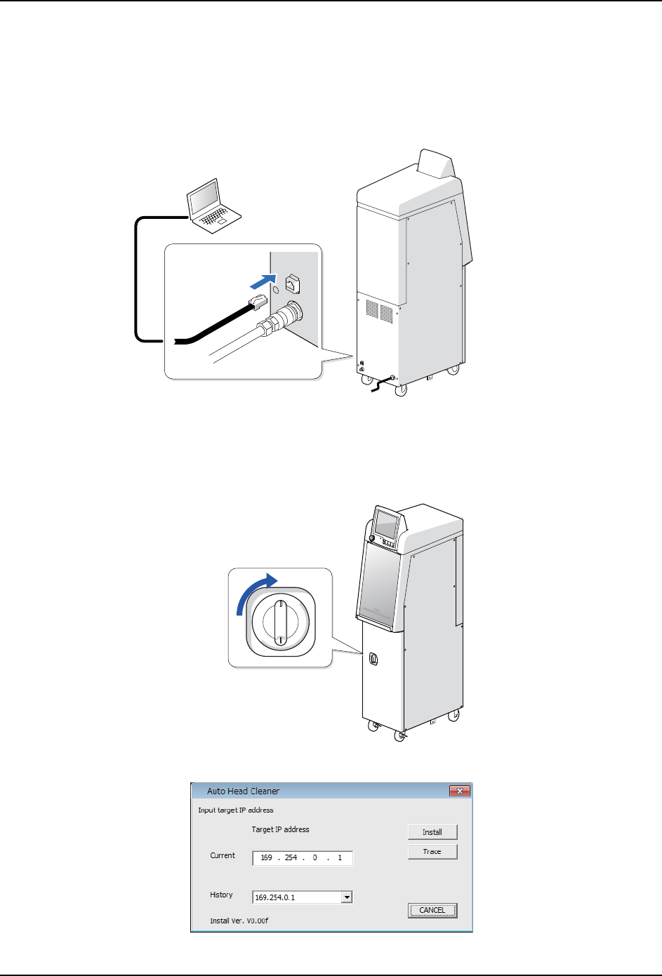 首先,请通过 LAN 线缆连接 PC 和工作头自动清洗机。